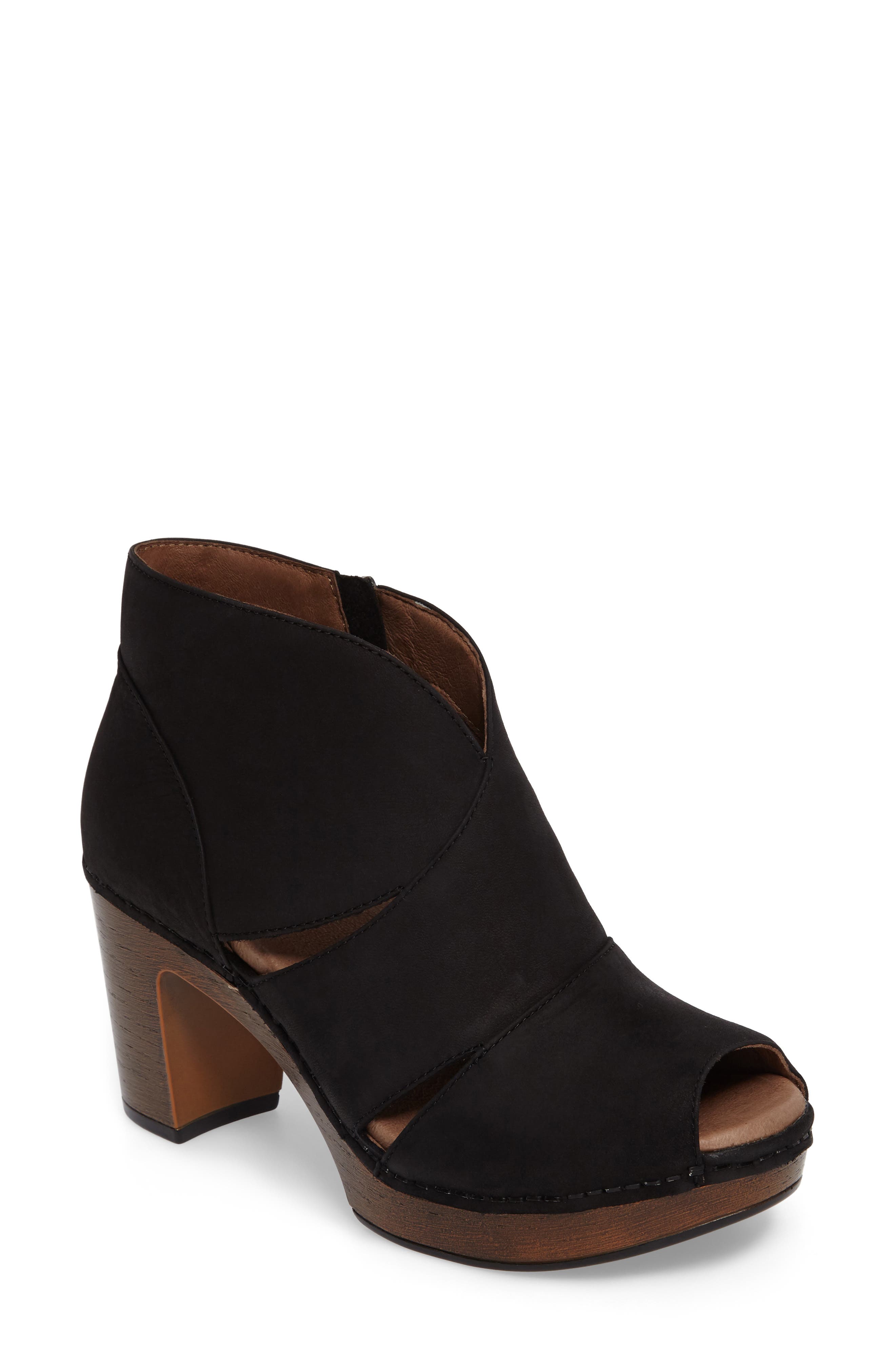 Womens Dansko Demetra Open Toe Bootie - Black Milled Nubuck - FREE Shipping & Exchanges dansko petra bootie