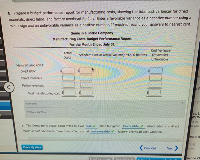 Solved Budget Performance Report Genie in a Bottle Company | Chegg.com report genie flip flop