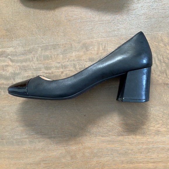 Cole Haan | Shoes | Cole Haan Dawna Black Leather Cap Toe Block Heel Pumps Size 95b | Poshmark cole haan dawna cap toe pumps