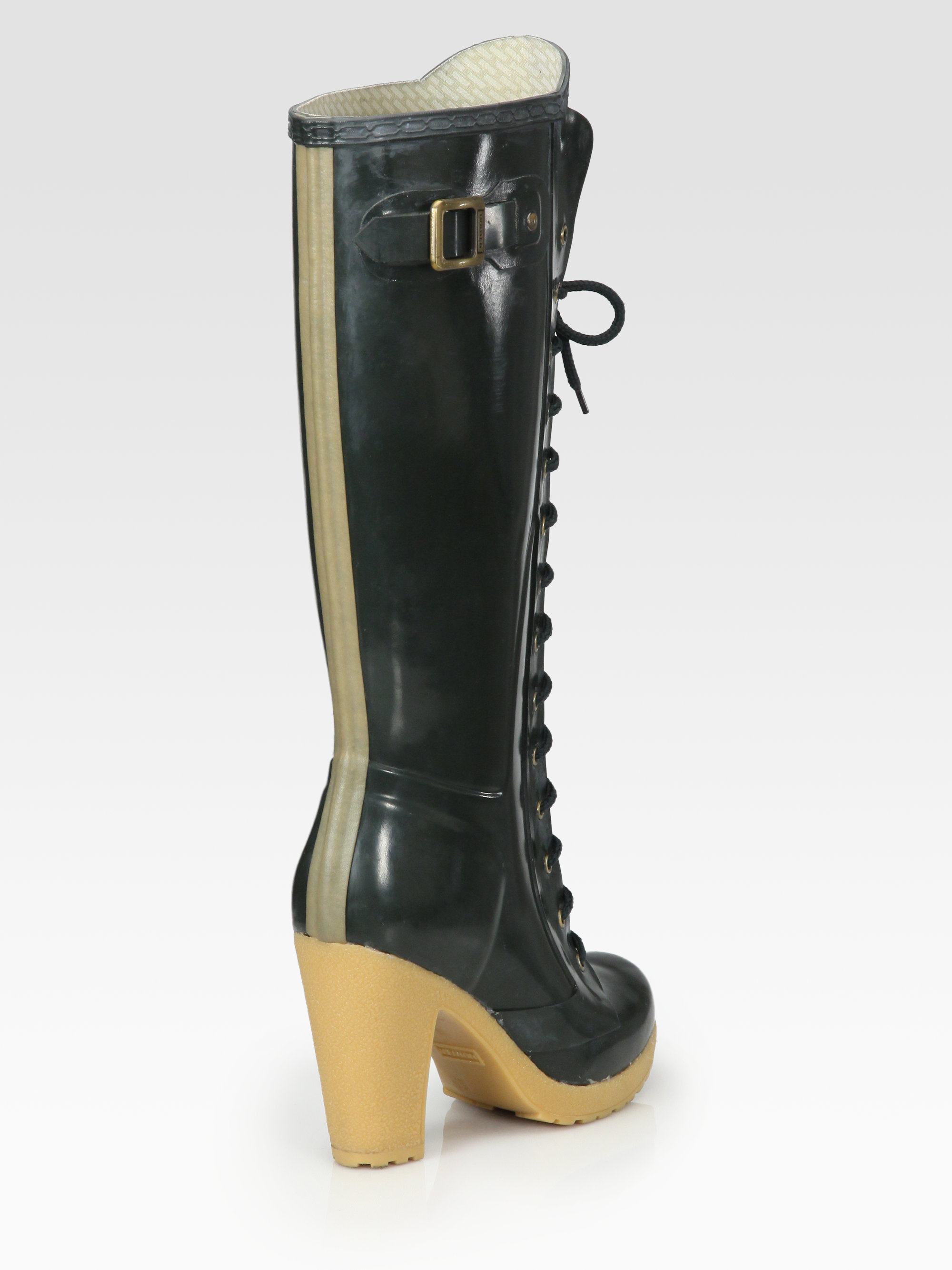 HUNTER Labins Lace-up High Heel Rain Boots in Olive (Black) - Lyst hunter high heel rain boots