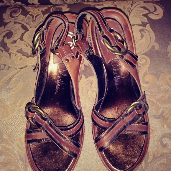 Cole Haan | Shoes | Cole Haan Brown Leather Wedge Sandals 8 | Poshmark cole haan black wedge sandals
