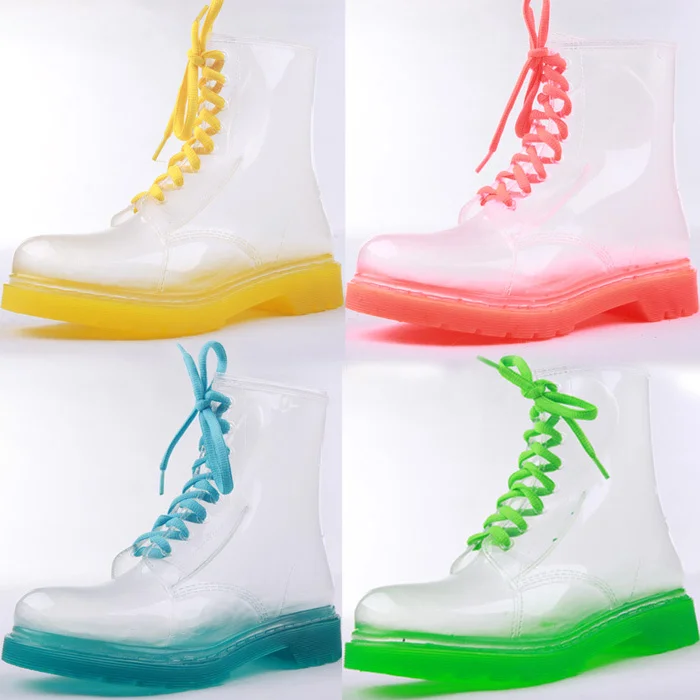 Women Fashion Leisure Clear Transparent Rain Boots Lace up Martin Boots Jelly Shoes Ankle Boots elegant rain boots