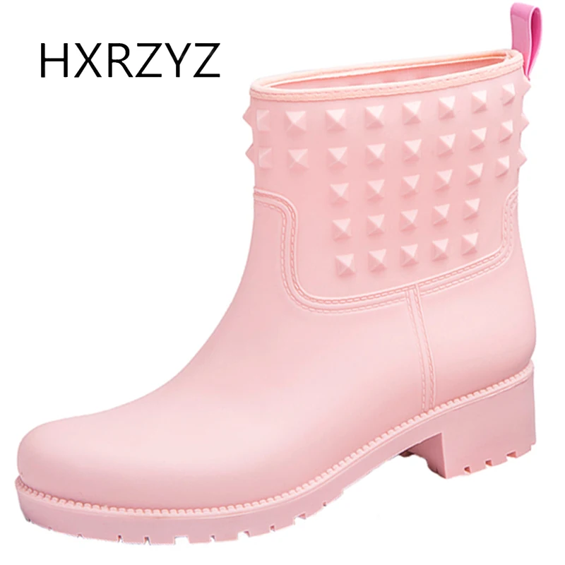 HXRZYZ women black rain boots female rubber ankle boots spring and autumn new fashion PVC slip black rain boots ankle