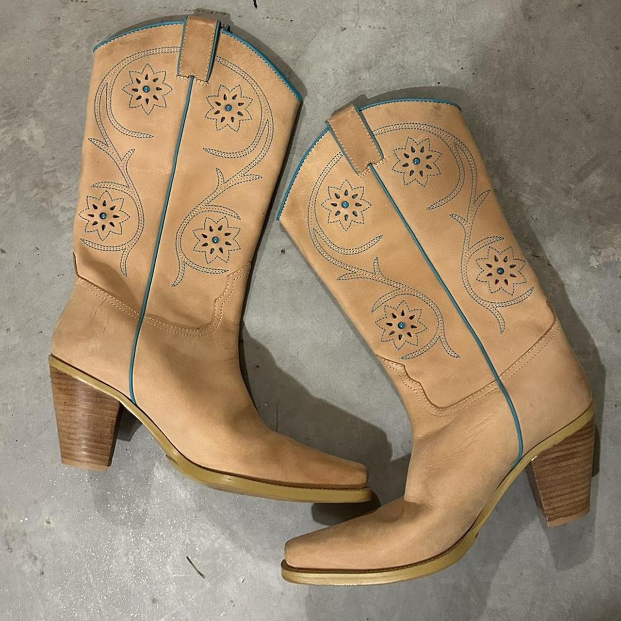 Franco Sarto Women's Tan and Blue Boots | Depop franco sarto indigo boot