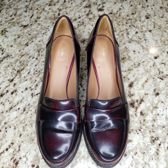 Clarks | Shoes | Clarks Artisan Burgundy Tarah Grace Loafer Heel | Poshmark clarks tarah grace