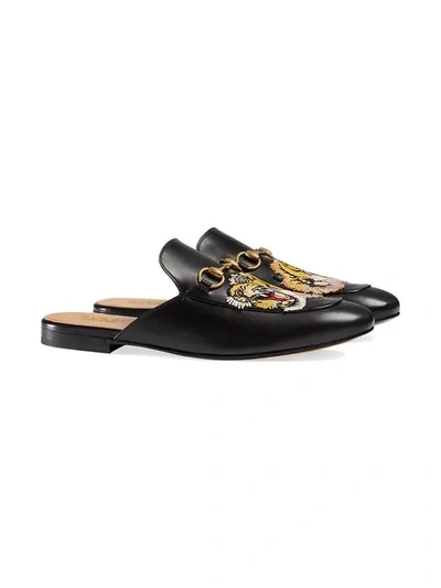 Gucci Princetown Tiger-appliqué Leather Backless Loafers In Black | ModeSens gucci princetown slipper tiger