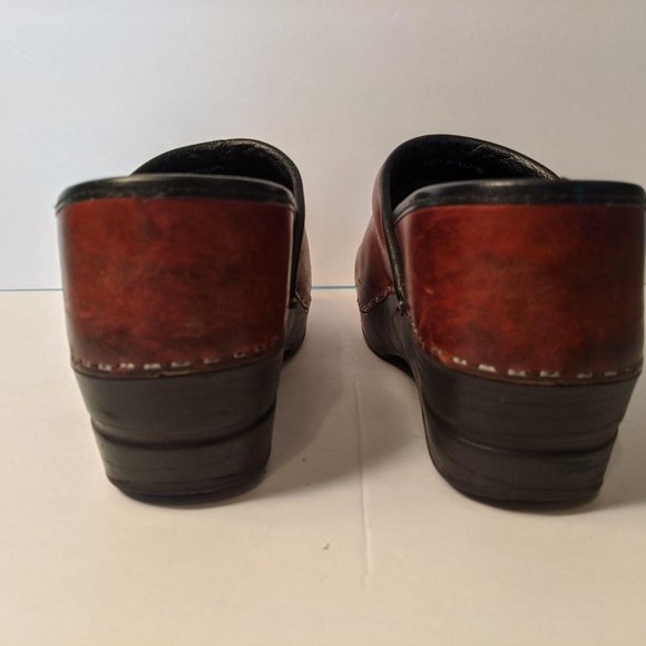 Dansko Women's Burgundy and Black Clogs | Depop burgundy dansko clogs