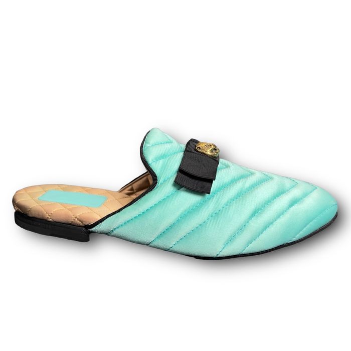 Gucci Tiger buckle mule satin embellished flat tiffany blue 37 EUR | Grailed gucci mules tiger